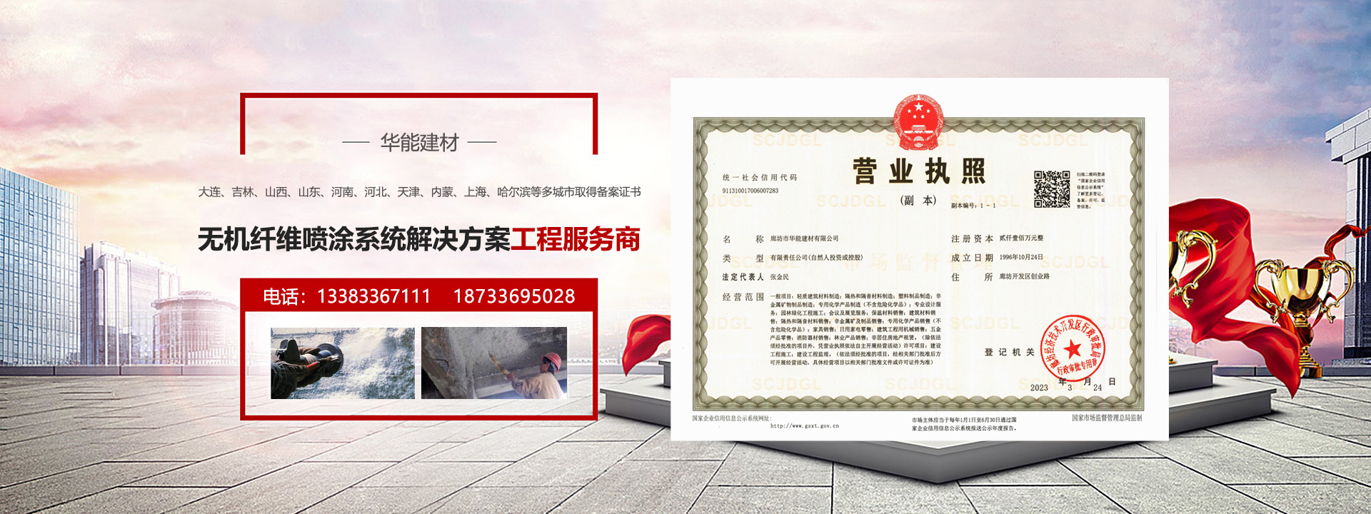 廊坊市華能建材有限公司成立于1996年10月24日,為河北華能中天化工建材集團下屬子公司,注冊資金2100萬元,固定資產3000多萬元,職工186人元。公司設在廊坊市經濟開發區和廊坊市留各莊保溫建材工業園區。